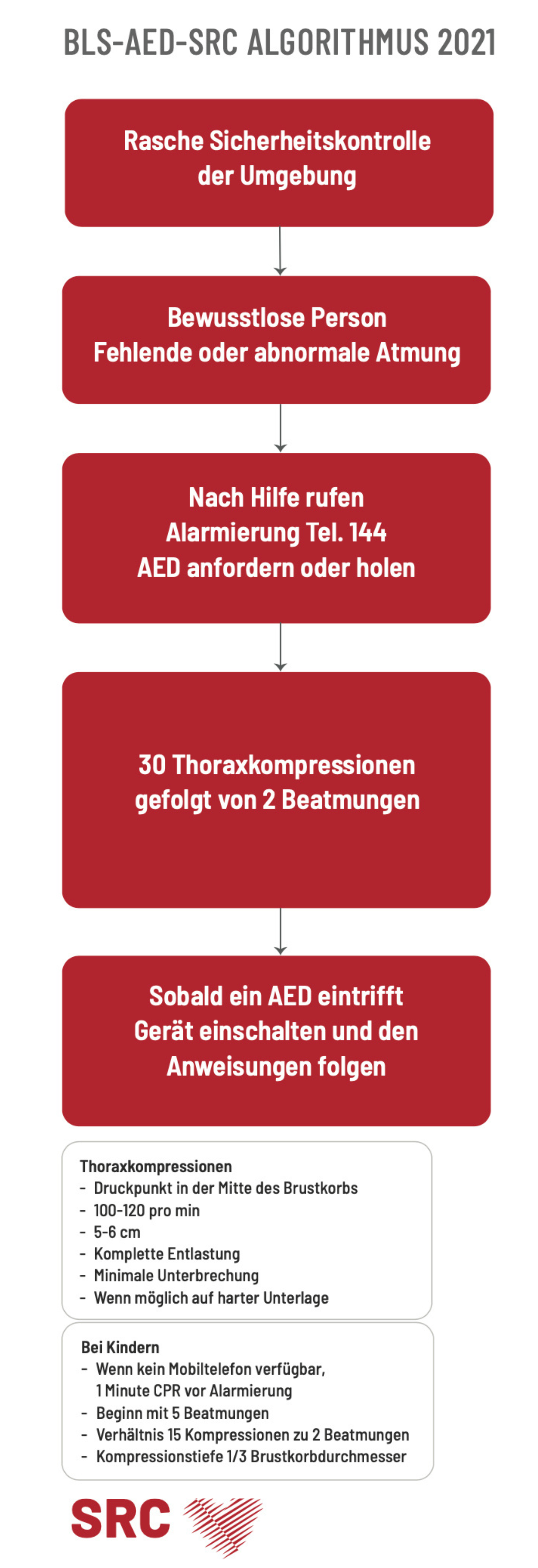 Das Kurs-Zertifikat ist zwei Jahre gültig. Weil selten bzw. nicht angewandte Fertigkeiten verloren gehen, empfiehlt der SRC den regelmässigen Wiederbesuch von BLS-AED-Kursen (alle 2 Jahre).